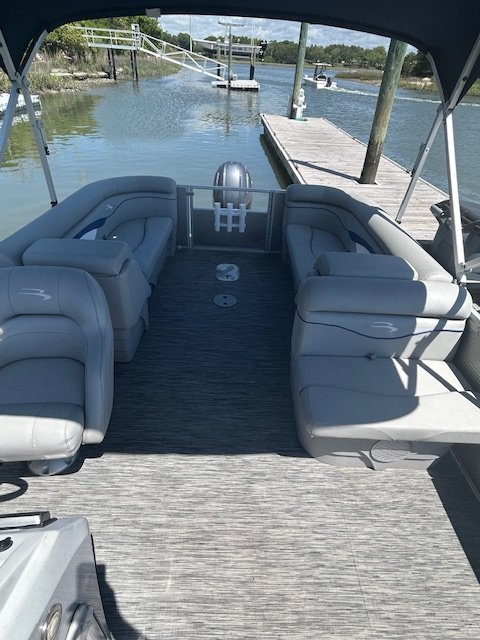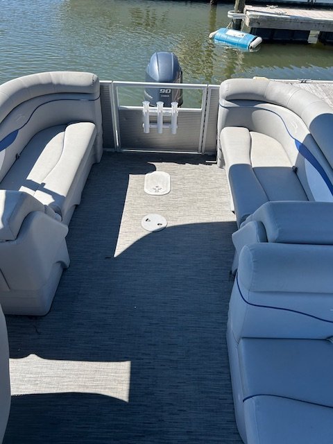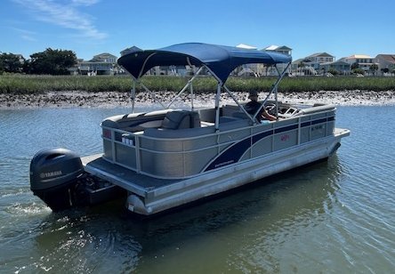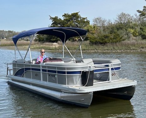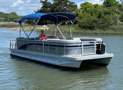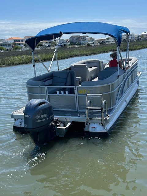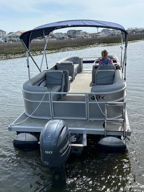 We name all our boats by colors and this is "Blue". This 23' pontoon boat, is rated for up to 12 passengers with tons of room and very comfortable couch style seating. THIS IS NOT A SPEED BOAT: You are renting this boat for the casual cruising, not getting from point A to point B as quickly as possible. The boat is set to cruise at 10-20mph and speed will vary depending upon the amount of weight added (people, coolers etc...). The boat is equipped with wrap around seating, drink holders, anchor and safety equipment as required by NC law. Blue is a great boat for cruising the waterway with family and friends.