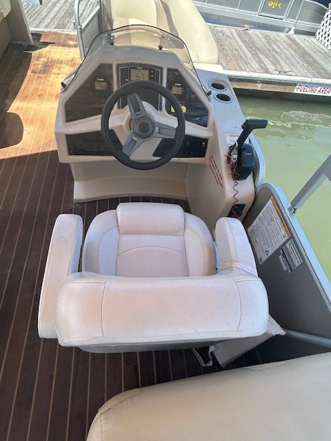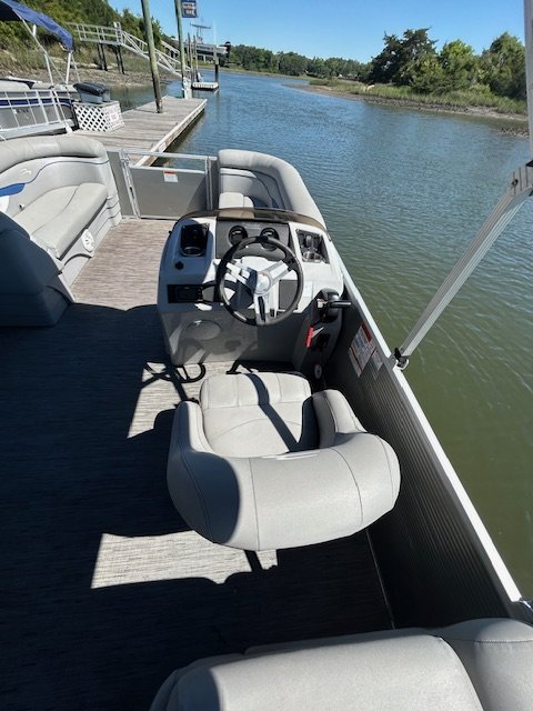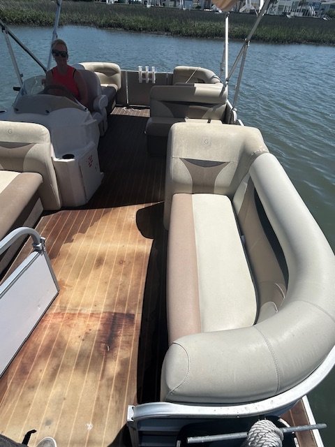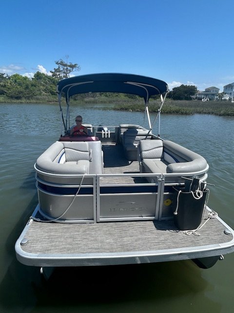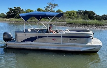 We name all our boats by color and this is "Teal". This 22' pontoon boat, seats up to 12 with tons of room and very comfortable couch style seating. THIS IS NOT A SPEED BOAT: You are renting this boat for the casual cruising, not getting from point A to point B as quickly as possible. The boat is set to cruise at 10-20mph and speed will vary depending upon the amount of weight added (people, coolers etc...). The boat is equipped with wrap around seating, drink holders, anchor and safety equipment as required by NC law. Teal is a great boat for cruising the waterway with family and friends.