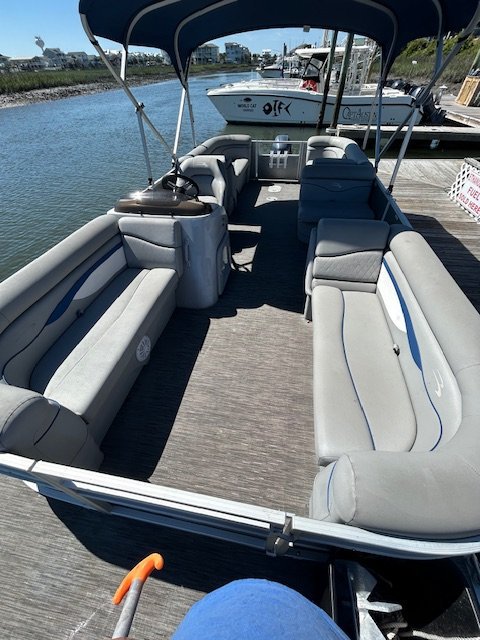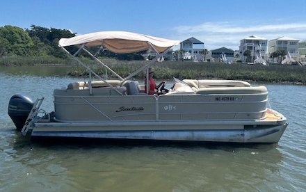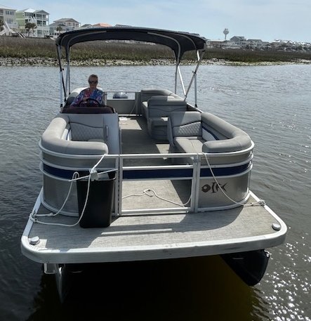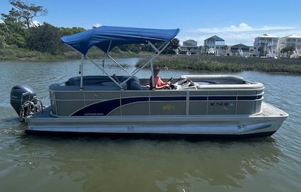 We name all our boats by colors and this is "Grey". This 22' pontoon boat is rated for up to 12 passengers with tons of room and very comfortable couch style seating. THIS IS NOT A SPEED BOAT: You are renting this boat for the casual cruising, not getting from point A to point B as quickly as possible. The boat is set to cruise at 10-20mph and speed will vary depending upon the amount of weight added (people, coolers etc...). The boat is equipped with wrap around seating, drink holders, anchor and safety equipment as required by NC law. Grey is a great boat for cruising the waterway with family and friends.